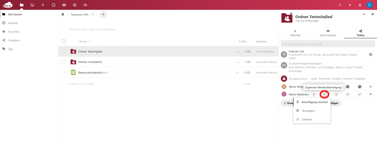 Dies ermöglicht pro Ordner / Unterordner oder sogar pro Datei zu bestimmen, welche Nutzer Lesen / Schreiben (Datei bearbeiten) dürfen.