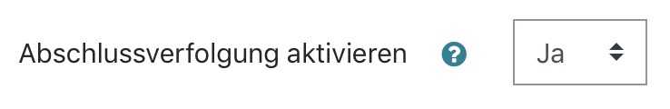 Diese Option legt fest, ob die Einstellung zur Abschlussverfolgung in den Einstellungen der Aktivität und/ oder der Übersichtsseite zur Abschlussverfolgung angezeigt wird. Es wird empfohlen diese Einstellung zu verwenden, damit im Dashboard sinvolle Informationen zum Kursfortschritt angezeigt werden können. |