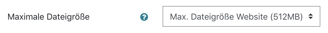 Diese Einstellung legt die maximale Größe einer Datei fest, die Teilnehmer/innen im Kurs hochladen können. Diese wird nach oben begrenzt durch die Voraussetzungen des Servers und die Einstellungen der Administratoren/innen für die gesamte BKS.rlp Lernplattform Installation. Es ist möglich, diese Einstellung für einzelne Aktivitäten im Kurs weiter einzuschränken, indem Sie die gleichnamige Einstellung für die einzelne Aktivität entsprechend anpassen. |