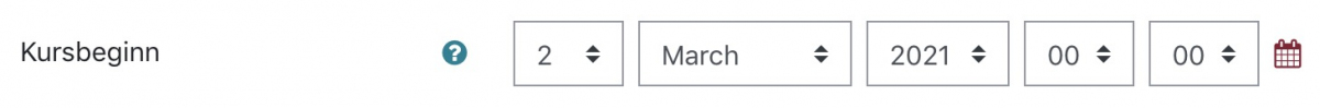 Wenn Sie im Kurs das Wochenformat benutzen, definiert die Einstellung den ersten Tag der ersten angezeigten Woche im Kurs. Die Einstellung legt auch fest, ab wann Aktivitätsberichte im Kurs erfasst werden. Wenn der Kurs zurückgesetzt und der Kursbeginn geändert wird, ändern sich auch die anderen Zeitangaben im Kurs in Abhängigkeit vom neuen Kursbeginn. |