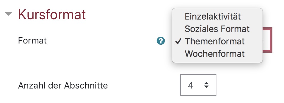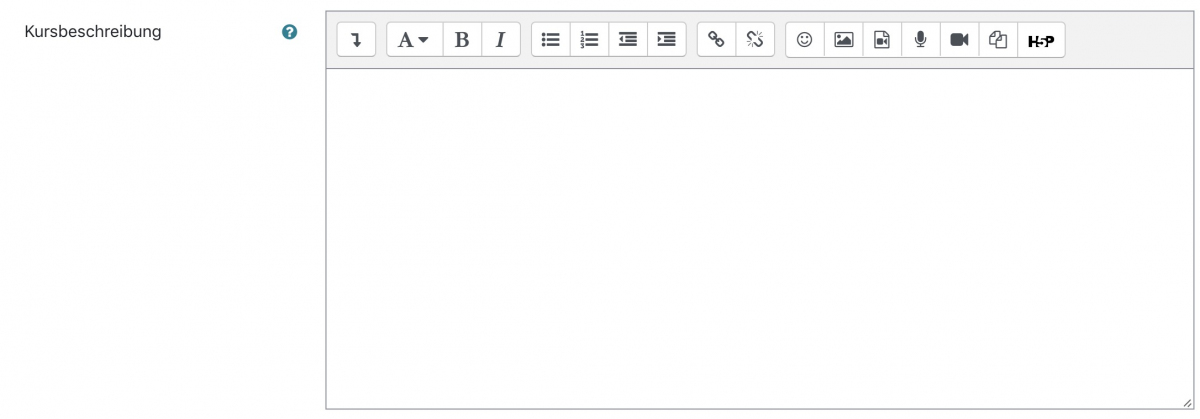 Die Kurs-ID-Nummer wird lediglich zum Abgleich von Kursdaten durch externe Datenbanken benötigt bzw. angezeigt. In Moodle selbst wird die Nummer nicht weiter benötigt bzw. angezeigt. Wenn Sie eine offizielle Kursnummer haben, können Sie diese hier eintragen, andernfalls lassen Sie das Feld leer. |