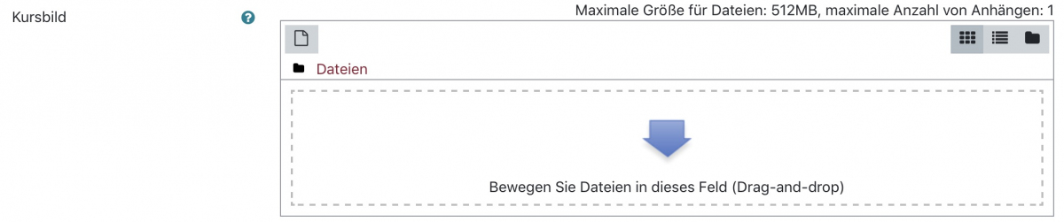 Das Kursbild wird in der Kursübersicht im Dashboard angezeigt. Weitere Dateitypen und zusätzliche Dateien können von Administratoren/innen der Website aktiviert werden. Wenn weitere Dateien hochgeladen sind, werden sie neben der Kursbeschreibung in der Kursübersicht angezeigt. |