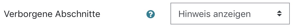 Diese Einstellung legt fest, ob verborgene Bereiche in der Kursübersicht angezeigt werden (z.B. für einen Kurs im Wochenformat, um Ferien darzustellen) oder ob sie vollständig ausgeblendet sind. |