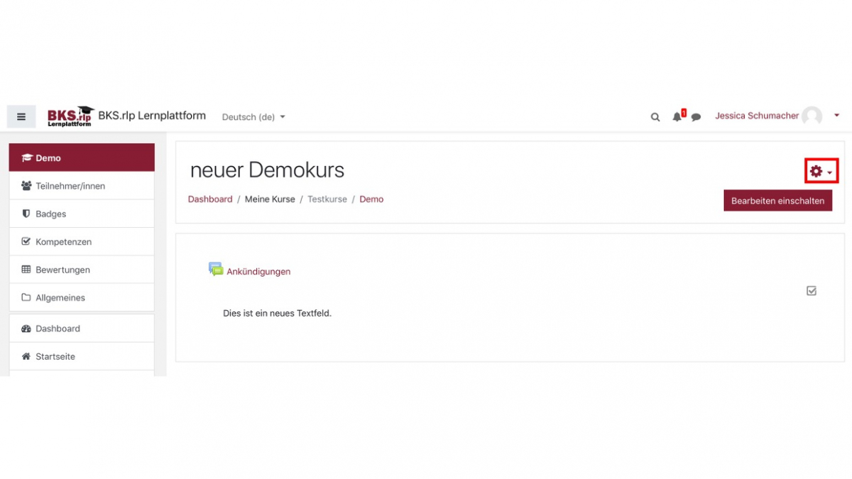 Die Einstellungen für den Kursabschluss können Sie über das Zahnradsymbol neben dem Kursnamen öffnen.