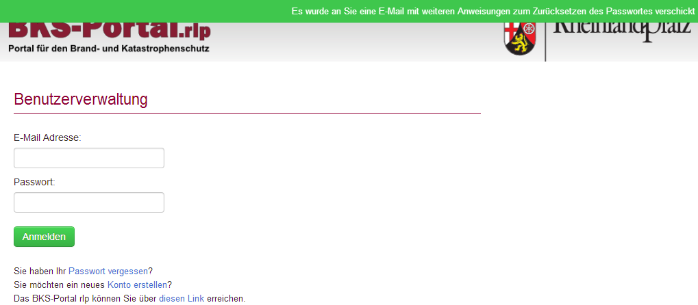 Hier wird der Benutzer nach seiner Benutzerkennung und seinem Kennwort (Passwort) gefragt, welche nach einer erfolgreichen Registrierung festgelegt werden. Die E-Mail-Adresse des Benutzers ist zugleich seine Benutzerkennung.
