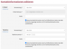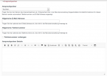 Auf mehrfachen Nutzer-Wunsch wurde für "Organisation"-Seiten und "Geschützter Raum"-Seiten das Ansprechpartner-Feld um ein freie editierbares mehrzeiliges Textfeld erweitert. Hier kann beispielsweise ein zweiter Ansprechpartner genannt werden oder Zusatzinformationen vom primären Ansprechpartner wie zum Beispiel Sprechzeiten.