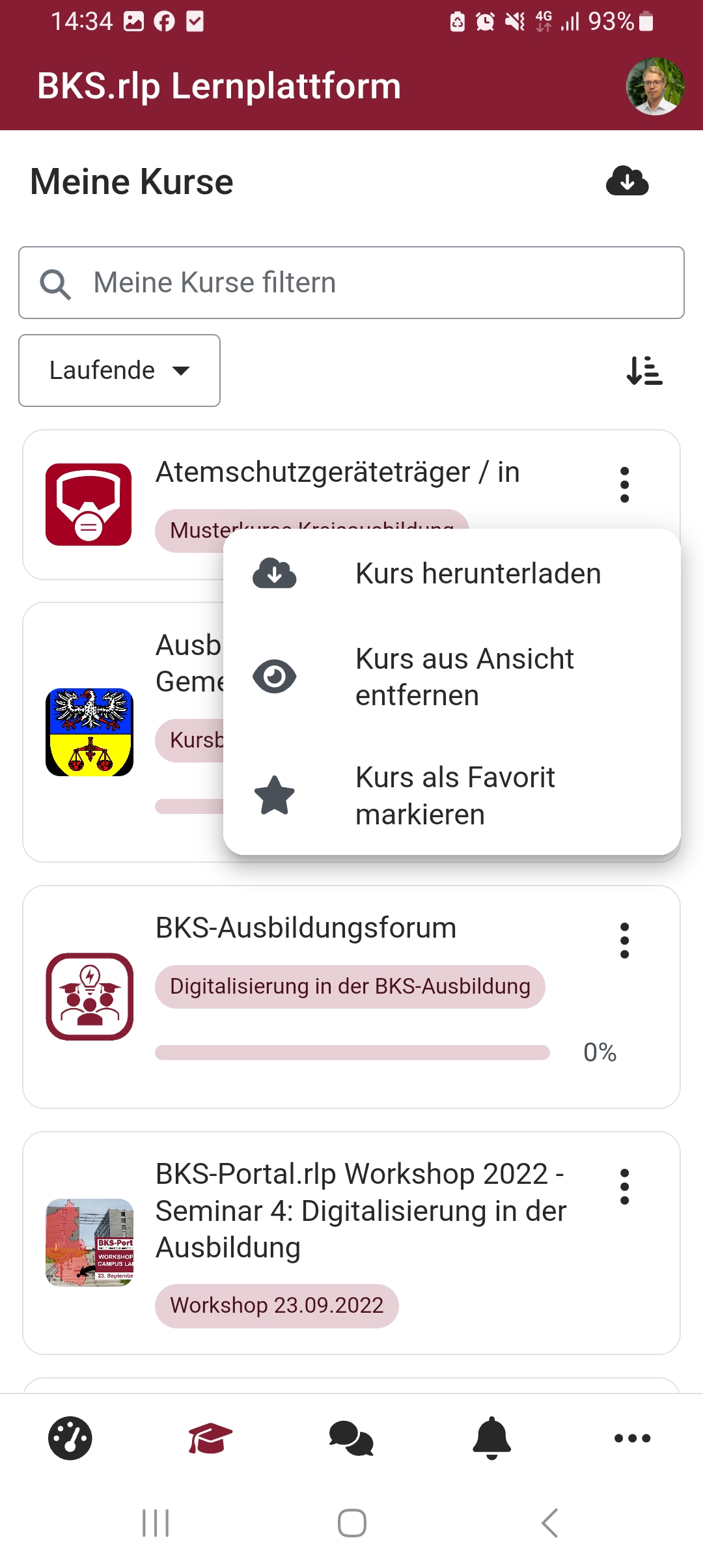 Im zweiten Menüpunkt der App unter „Meine Kurse“ können nun beliebig viele Kurse heruntergeladen werden. Damit sind die Kursinhalte auch ohne unmittelbare Internetverbindung unterwegs verfügbar und können zum Lernen genutzt werden.