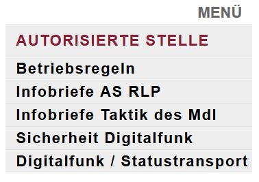 Die Dokumente sind nun unter den Kategorien Betriebsregeln, Inforbriefe AS RLP, Inforbriefe Taktik des MdI, Sicherheit Digitialfunk und Digitalfunk / Statustransport, links oben, im Menü zu finden und für alle registrierten BKS-Portal.rlp Nutzer verfügbar.
