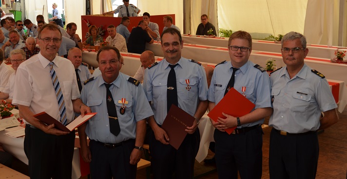 Hans-Peter Plattner, Vertreter des Innenministeriums und Landesfeuerwehrinspekteur, der zunächst die hervorragende Zusammenarbeit der Neuwieder mit dem Land unterstrich, und Landrat Rainer Kaul nutzen die Gelegenheit drei Feuerwehrmänner auszuzeichnen. Holger Kurz, stellv. Kreisfeuerwehrinspekteur erhielt das Silberne Feuerwehrehrenzeichen für seinen Einsatz, insbesondere bei der technischen Ausstattung der Feuerwehren. Als Sicherheits- und Brandschutzingenieur plant und verantwortet er maßgeblich technische Neuanschaffungen.