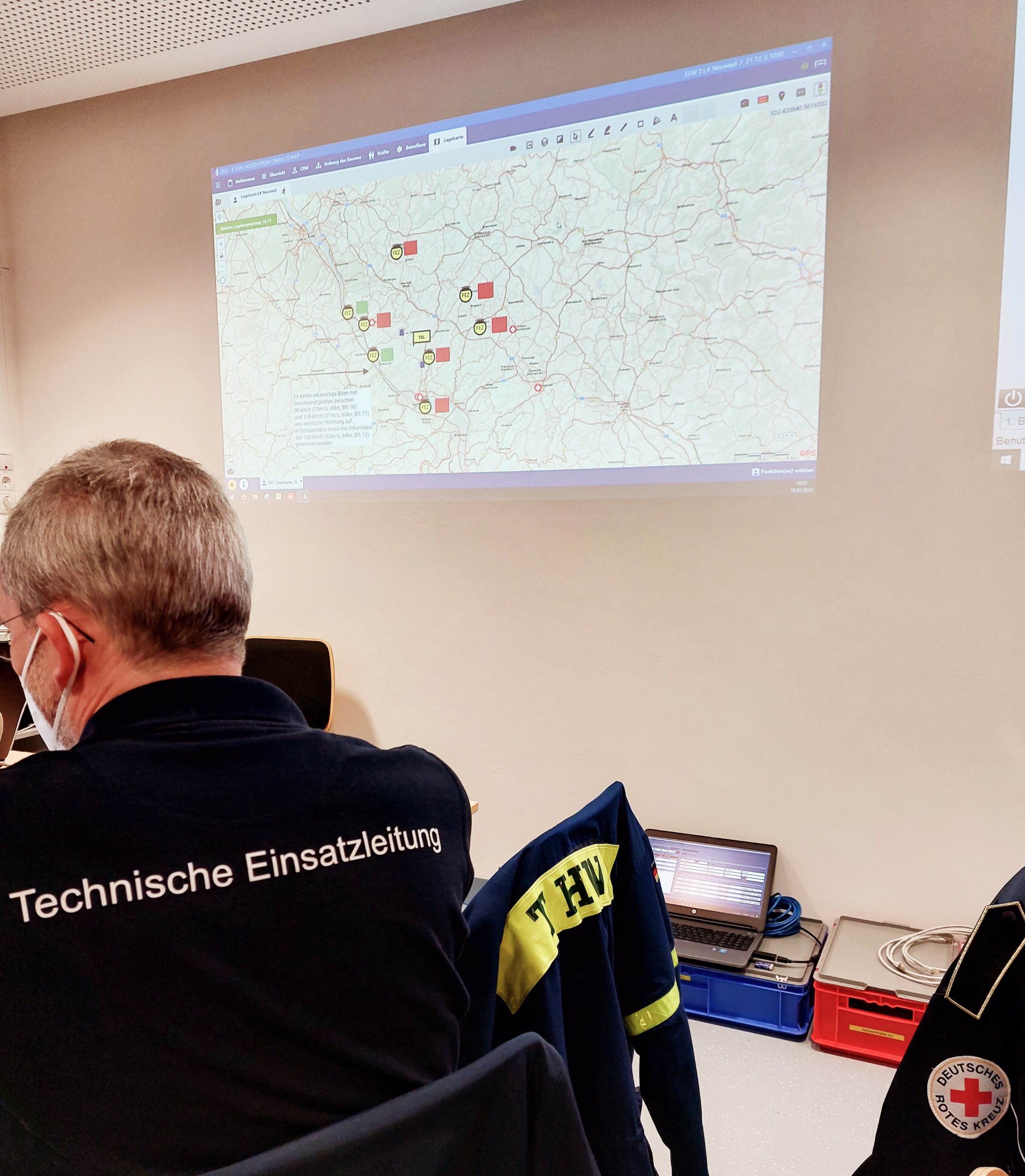 Durch den Landkreis Neuwied wurde am Freitagnachmittag und -abend die Technische Einsatzleitung im Feuerwehrgerätehaus Kurtscheid besetzt. Die Besetzung erfolgte durch Mitglieder der Feuerwehren, des THW und der Hilfsorganisationen.