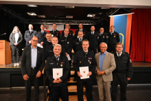 VG Bad Hönningen / Rheinbrohl. Am Freitag, den 16.05.2025 fand im Römersaal in Rheinbrohl der Abend der Feuerwehren der Verbandsgemeinde Bad Hönningen statt. Bürgermeister Jan Ermtraud und Wehrleiter Michael Scharrenbach konnten neben den aktiven Mitgliedern der Feuerwehr, Jugendfeuerwehr und Alterswehr, Landrat Achim Hallerbach, den Brand- und Katastrophenschutzinspekteur Holger Kurz, sowie weitere Vertreter/innen aus Politik und der kommunalen Familie begrüßen. Auch die Werkfeuerwehr Kandelium nahm am Abend der Feuerwehren teil