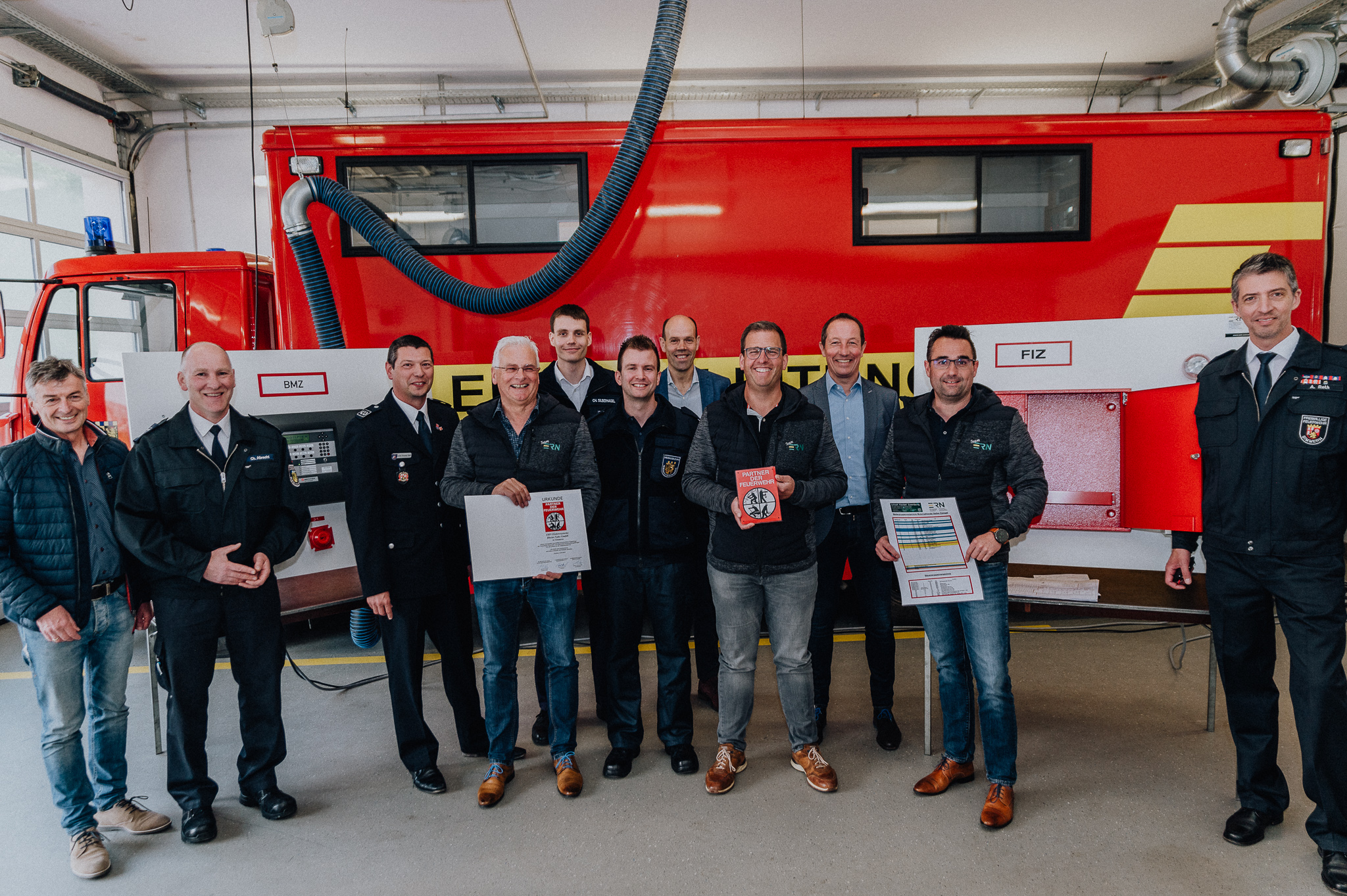 In Dank und Anerkennung für die nicht selbstverständliche Unterstützung bei einem solchen Projekt sowie darüber hinaus wurde durch den Vorsitzenden des Kreisfeuerwehrverbandes, Herrn Daniel-Thomas Geis, die Geschäftsführung der Firma ERN Elektrosysteme Rhein-Nahe GmbH mit der Urkunde sowie der Plakette „Partner der Feuerwehr“ ausgezeichnet. Der stellvertretende Brand- und Katastrophenschutzinspekteur des Landkreises, Herr Christian Albrecht, betonte in dem Zusammenhang, wie wertvoll ein solches Sponsoring durch heimische Firmen ist: „Gut, dass es Chefs und Firmen gibt, die das Ehrenamt so unterstützen und die Mitarbeiter freistellen für Einsätze und Ausbildung der heimischen Feuerwehren!“