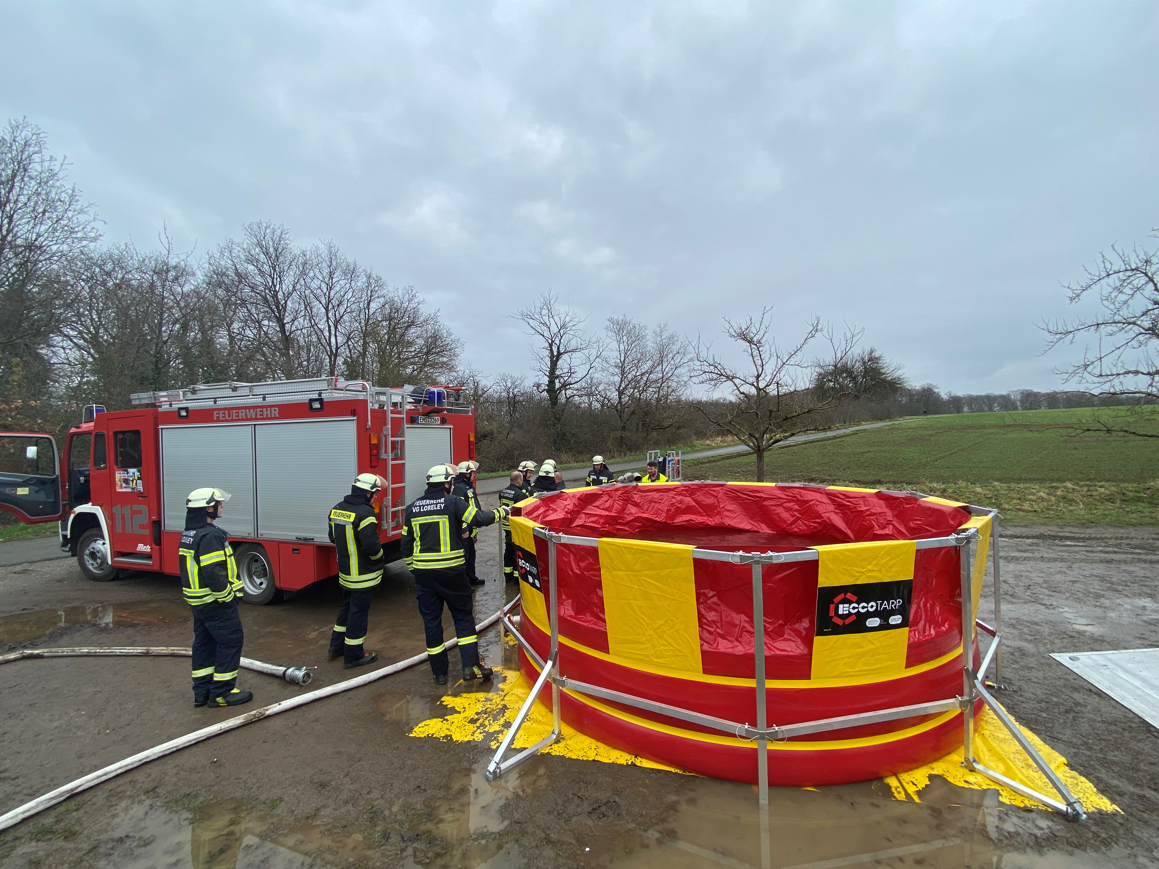 Damit  bei einem Einsatz schnelle und effektive Hilfe gewährleistet ist, müssen diese Teileinheiten regelmäßig zusammen üben. So waren aus diesem Grund 45 Einsatzkräfte auf der Lahnsteiner Höhe im Einsatz, um die Schwerpunkte Wasserübergabe in ein Auffangbecken mit 20.000 Liter Fassungsvermögen und die dynamische Vorgehensweise mit Löschfahrzeugen, dass sogenannte Pump & Roll, zu üben. Die Übungsleitung zeigte sich zufrieden mit den Leistungen und der Zusammenarbeit betonte aber, dass noch weitere Übungstage in den nächsten Monaten anberaumt werden, um zu einem das Fachwissen zu vertiefen und was bei allem Vorhalten von Material und Fahrzeugen am wichtigsten ist, die Kameradschaft der Teilnehmer zu fördern. Ziel sei es für die bevorstehende Sommerzeit und den damit auftretenden Bränden durch eventuelle Trockenheit, vorbereitet zu sein.