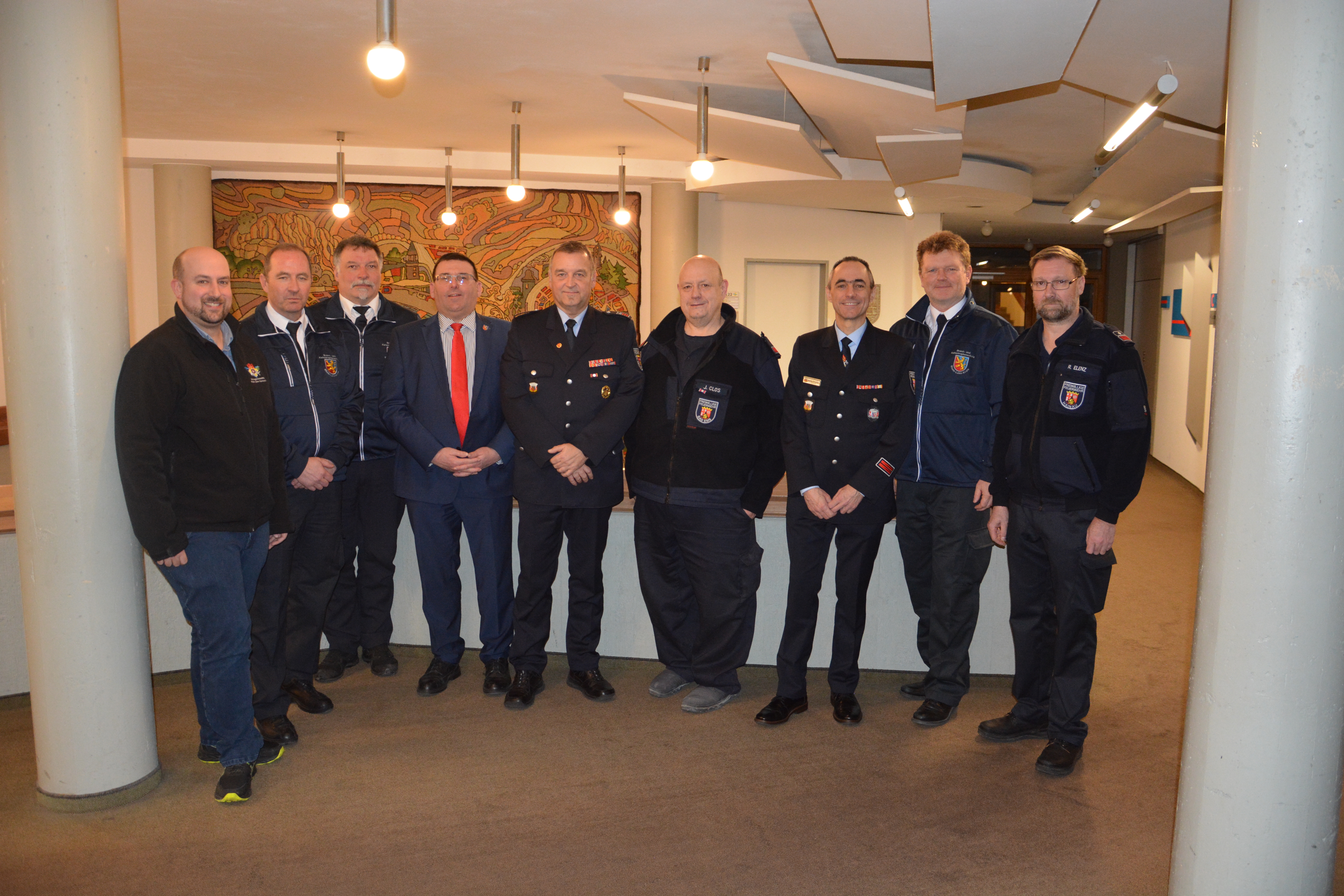 Traditionell findet die erste Wehrleiterdienstversammlung des Jahres im Kreishaus in Bad Ems statt. Hierzu sind alle Führungskräfte des Brand- und Katastrophenschutzes im Rhein-Lahn-Kreis eingeladen. Landrat Jörg Denninghoff sprach in seinem Grußwort seinen Dank und seine Anerkennung für die ehrenamtlichen Einsatzkräfte aus. Im Rahmen der Veranstaltung wurde Thomas Schmidt, langjähriges Mitglied des Bundesverbandes für Rettungshunde und aktiver Feuerwehrmann, als weiterer Fachberater für Rettungshunde und Ortungstechnik ernannt. Bei der Leitung der Kreisausbildung wurde ein Rollenwechsel vorgenommen. Dirk Reckenthäler, bisheriger Leiter der Kreisausbildung, tauschte die Funktion mit seinem bisherigen Stellvertreter Thorsten Massenkeil. Dirk Reckenthäler wurde in der Versammlung für seine Verdienste um das Feuerwehrwesen im Rhein-Lahn-Kreis vom Kreisfeuerwehrverband Rhein-Lahn mit der goldenen Ordensspange ausgezeichnet. Mit der silbernen Ordensspange würde Jens Clos für die Verdienste um das Informations- und Kommunikationswesen auf Verbandsgemeinde- und Kreisebene ausgezeichnet. Brand- und Katastrophen-schutzinspekteur Guido Erler berichtete mit seinem Team der Stabsstelle über anstehende Beschaffungen und Veranstaltungen, den Sachstand zum Ausbau des Sirenenwarnnetzes, die Fortführung der Alarm- und Einsatzplanung und der Kreisausbildung mit der Einführung der hybriden Lehrgangsform zum Truppführer. Bei Imbiss und Getränken blieb anschließend genügend Raum zum Austausch untereinander.