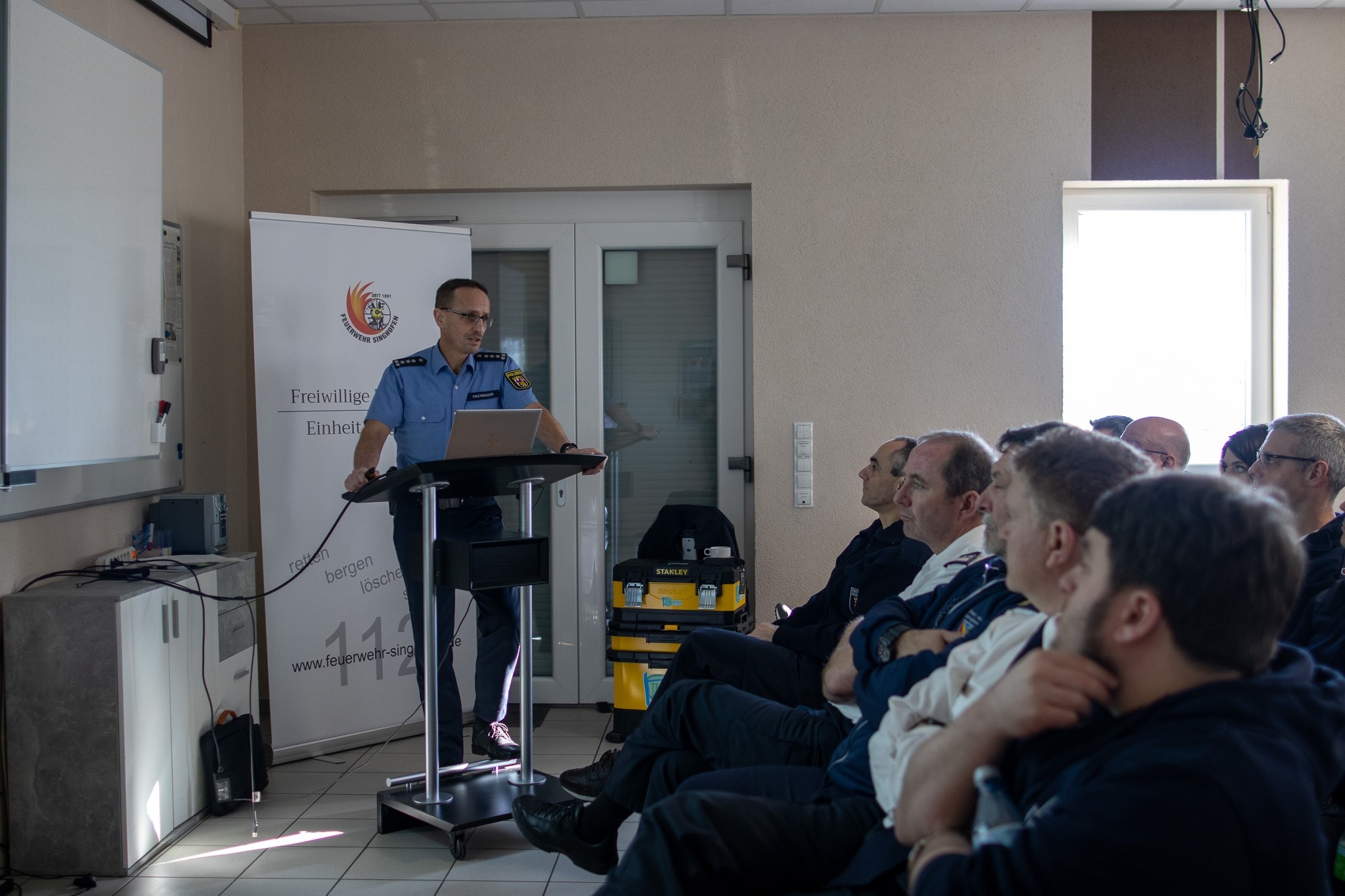 Der Hauptvortrag des Tages wurde von Michael Ehresmann gehalten, Pressesprecher der Berufsfeuerwehr Mainz, ehrenamtlicher stellvertretender Kreisbrandinspektor im Rheingau-Taunus-Kreis und Mitglied der Landesfacheinheit PuMA (Presse- und Medienarbeit). Ehresmann beleuchtete, wie Medienarbeit in der Praxis erfolgreich gestaltet werden kann und welche Herausforderungen es dabei zu bewältigen gilt. Mit einer Mischung aus gelungenen und weniger gelungenen Kommunikationsbeispielen verdeutlichte er, wie entscheidend professionelle und durchdachte Pressearbeit in Schadenslagen ist. Sein Vortrag war gleichermaßen lehrreich wie unterhaltsam und stieß auf große Begeisterung bei den Zuhörern.