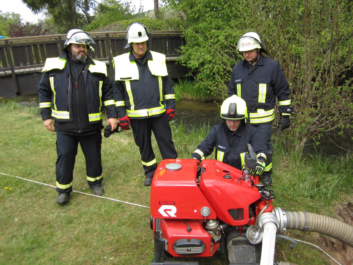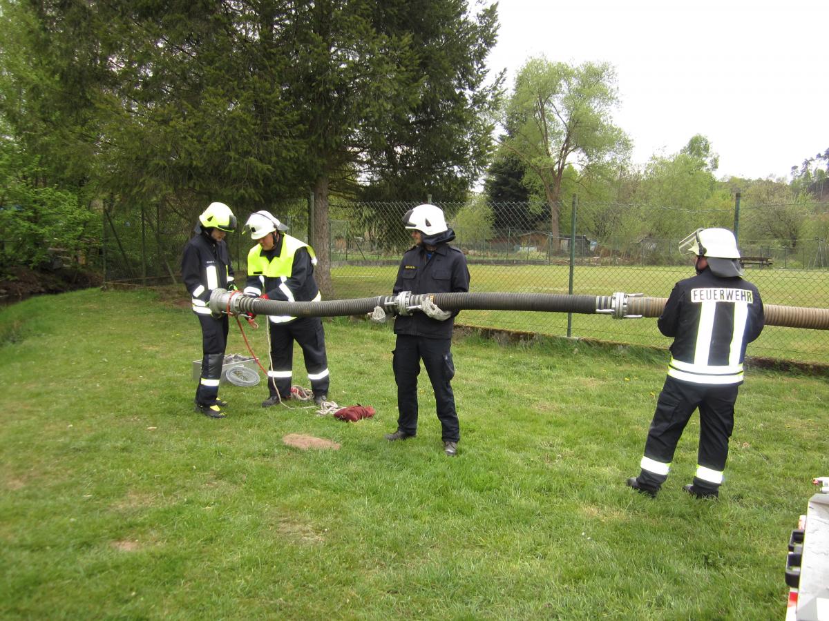 In zahlreichen praktischen Übungen wurde der Umgang mit den Gerätschaften, die Fehlersuche sowie die entsprechende Einrichtung von Löschwasserentnahmestellen geübt.