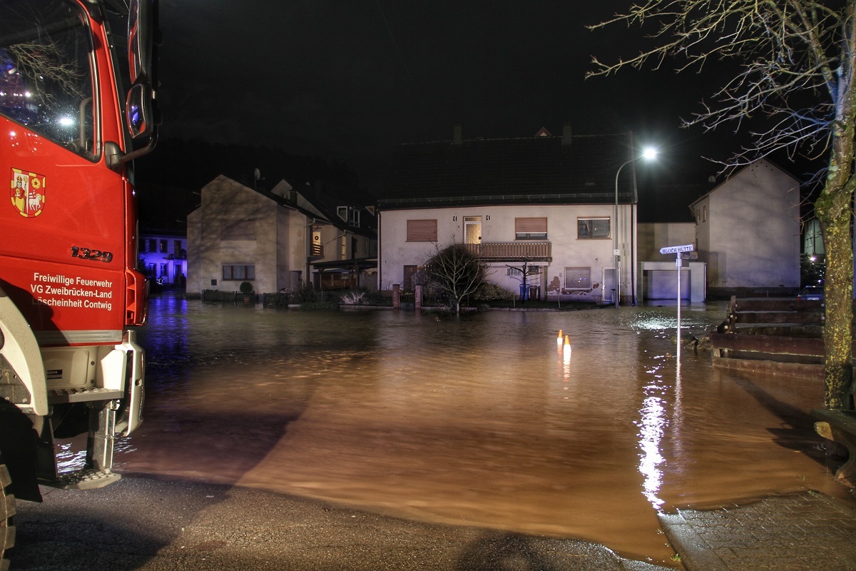 Dadurch bedingt mussten viele Feuerwehrkameradinnen und –kameraden tagelang ihre „Frau“ bzw. ihren „Mann“ stehen. Neben der Beseitigung zahlreicher Gefahrstellen durch umgestürzte Bäume, Erdrutsche, überflutete Fahrbahnen und Gebäudeteile gab es auch einen aufgeschwemmten Gastank mit abgeknickter Zuleitung in der Verbandsgemeinde Thaleischweiler-Wallhalben sowie eine gesperrte Bahnstrecke in der Verbandsgemeinde Rodalben, nachdem ein Regionalzug auf einen umgestürzten Baum aufgefahren war, zu vermelden.