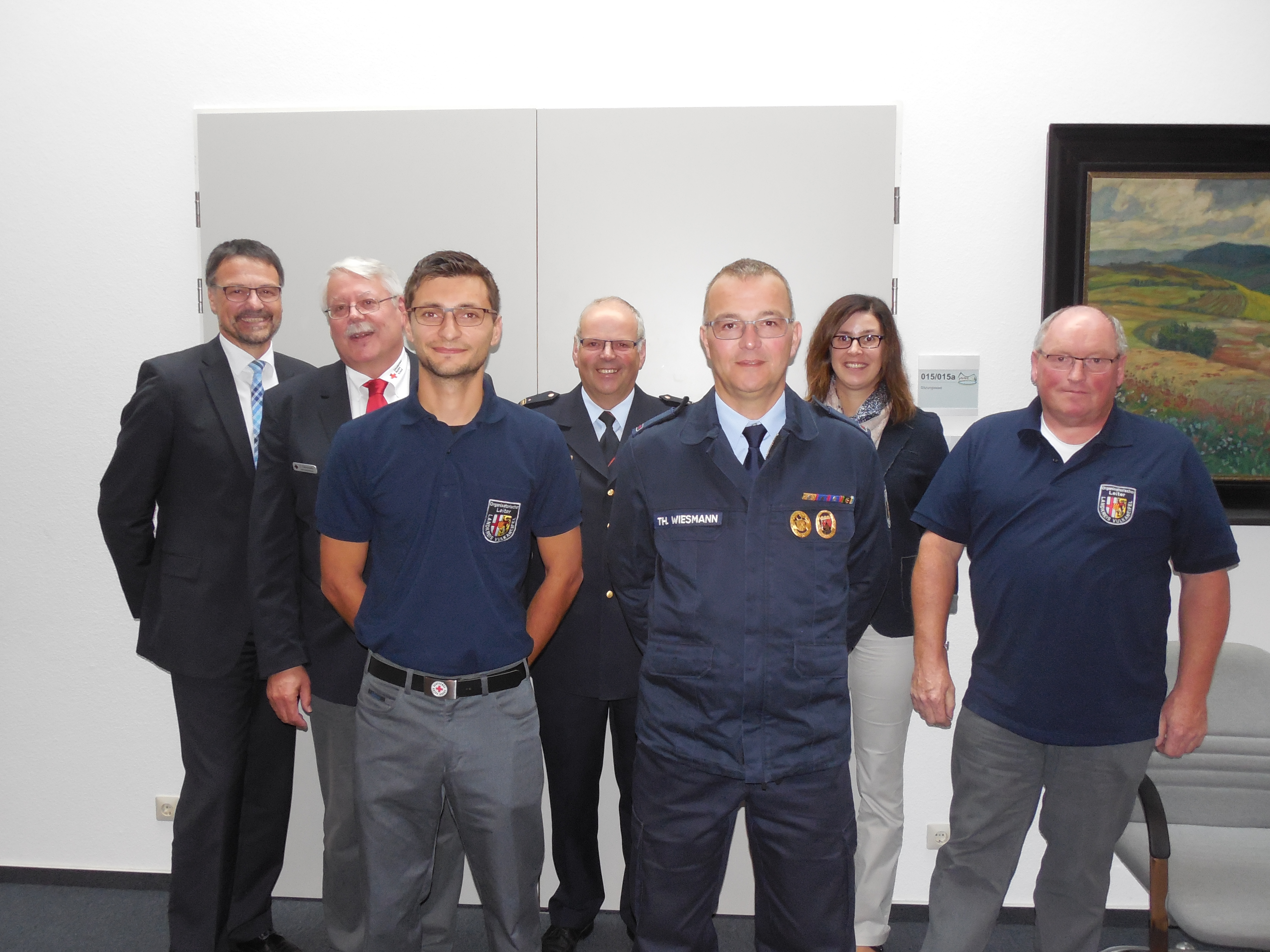Landrat Heinz-Peter Thiel und Kreisfeuerwehrinspekteur Christoph Bach bedankten sich für das Engagement der Herren, und wünschten ihnen für ihre neuen Tätigkeiten viel Erfolg.