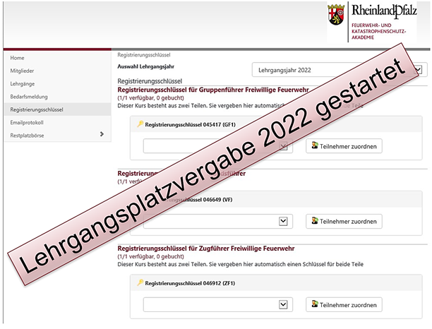 Koblenz / Rheinland-Pfalz. Die für das Lehrgangsjahr 2022 zugeteilten Lehrgangsplätze sind an die Aufgabenträger verteilt und können über die Onlinezugänge bei der LFKA abgerufen werden. Grundlagen für die Zuteilung sind der angemeldete Bedarf und der Zuweisungsschlüssel, der vom Arbeitskreis Feuerwehr und der Arbeitsgruppe Katastrophenschutz festgelegt wurde.