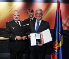 Beim zehnten Berliner Abend der deutschen Feuerwehren ist Innenminister Roger Lewentz mit der Deutschen Feuerwehr Ehrenmedaille geehrt worden (Bild: Fotograph/DFV). Mit dieser hohen Auszeichnung werden vornehmlich Personen gewürdigt, die zwar nicht aktiv der Feuerwehr angehören, sich aber in besonderem Maße um die Feuerwehr verdient gemacht haben. Frank Hachemer, Präsident des Landesfeuerwehrverbandes Rheinland-Pfalz e.V., hat die Ehrung von Minister Lewentz vorgeschlagen.