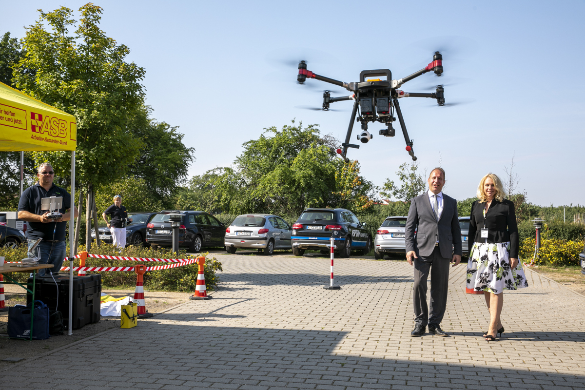 Die Leistungsfähigkeit der vom Land beschafften und bei örtlichen Einheiten abrufbaren Drohnen war live zu verfolgen.