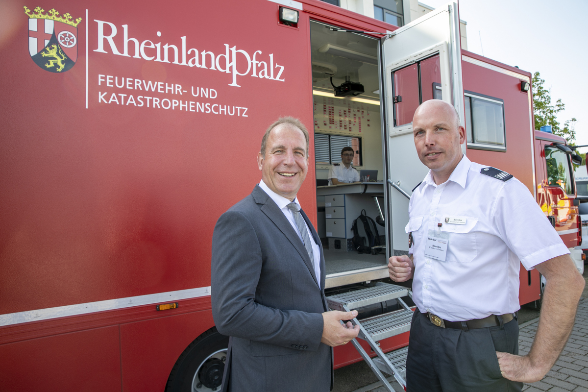 Neben den vielfältigen Themenkreisen zur Digitalisierung im kommunalen und staatlichen Bereich, lud Stich die 370 Kongressteilnehmerinnen und -teilnehmer ein, auch die „Blaulichtmeile“ im Ausstellungsbereich des in dieser Form erstmalig in RLP angebotenen Kongresses zu besuchen und die Möglichkeit zum Erfahrungsaustausch zu nutzen.