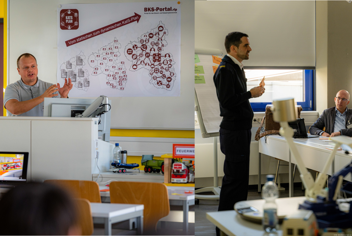 Dabei stand die Frage im Mittelpunkt, wie die bisher in bestimmten Intervallen aktualisierten und zum Großteil in Dokumenten oder auf Papier vorgehaltenen Katastrophenschutzpläne, in die dynamische und digitale Variante des BKS-Portal.rlp Moduls überführt werden können.