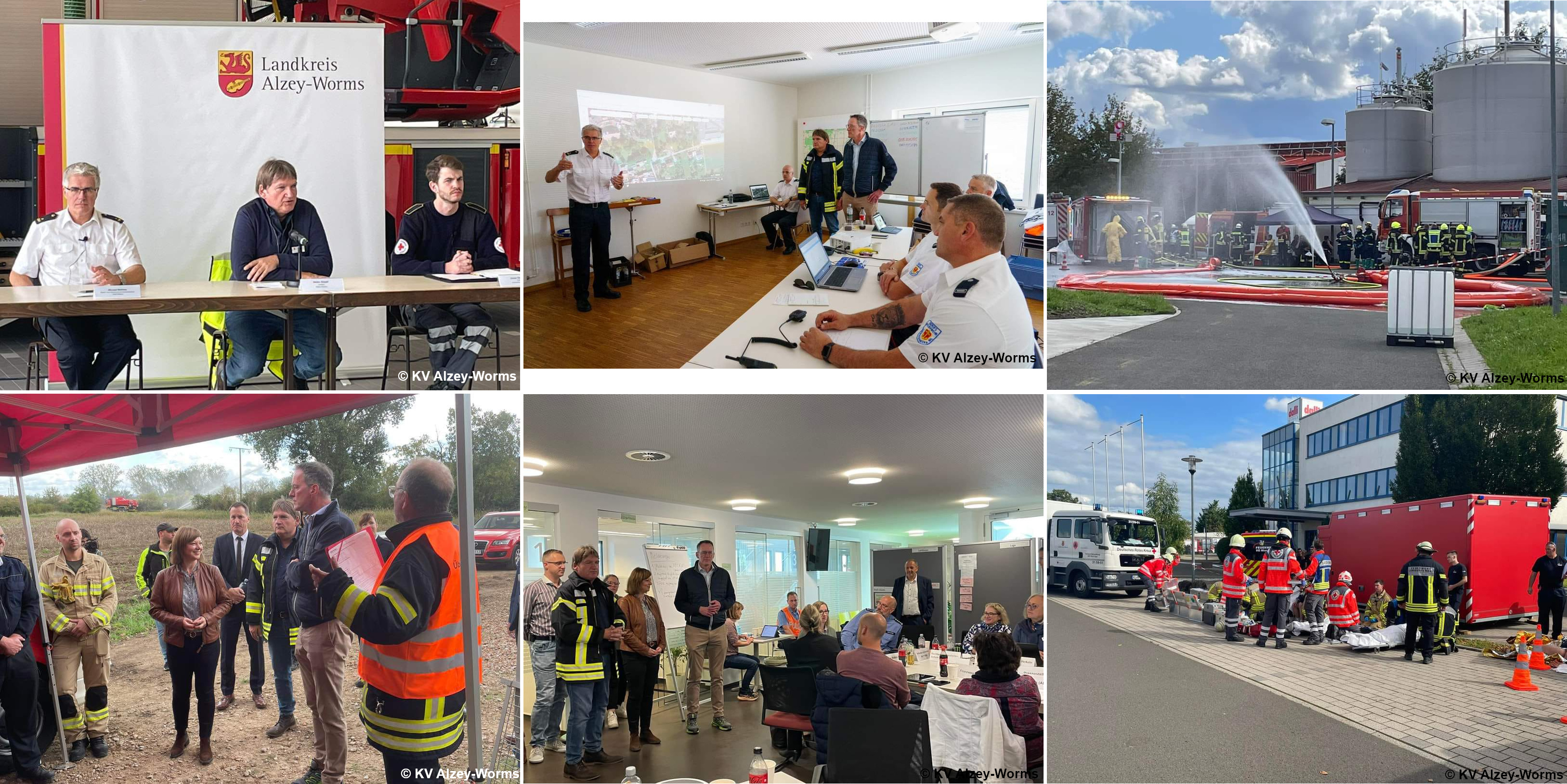 Der Landkreis Alzey-Worms führt an diesem Wochenende eine mehrtägige Katastrophenschutzübung durch. Etwa 950 Einsatzkräfte und die kommunalen Behörden üben ein fiktives Szenario, bei dem es teilweise parallel zu mehreren Großschadensereignissen kommt: Ein großflächiger Vegetationsbrand, ein Gefahrstoffaustritt in einem Betrieb und ein großer Industriebrand.