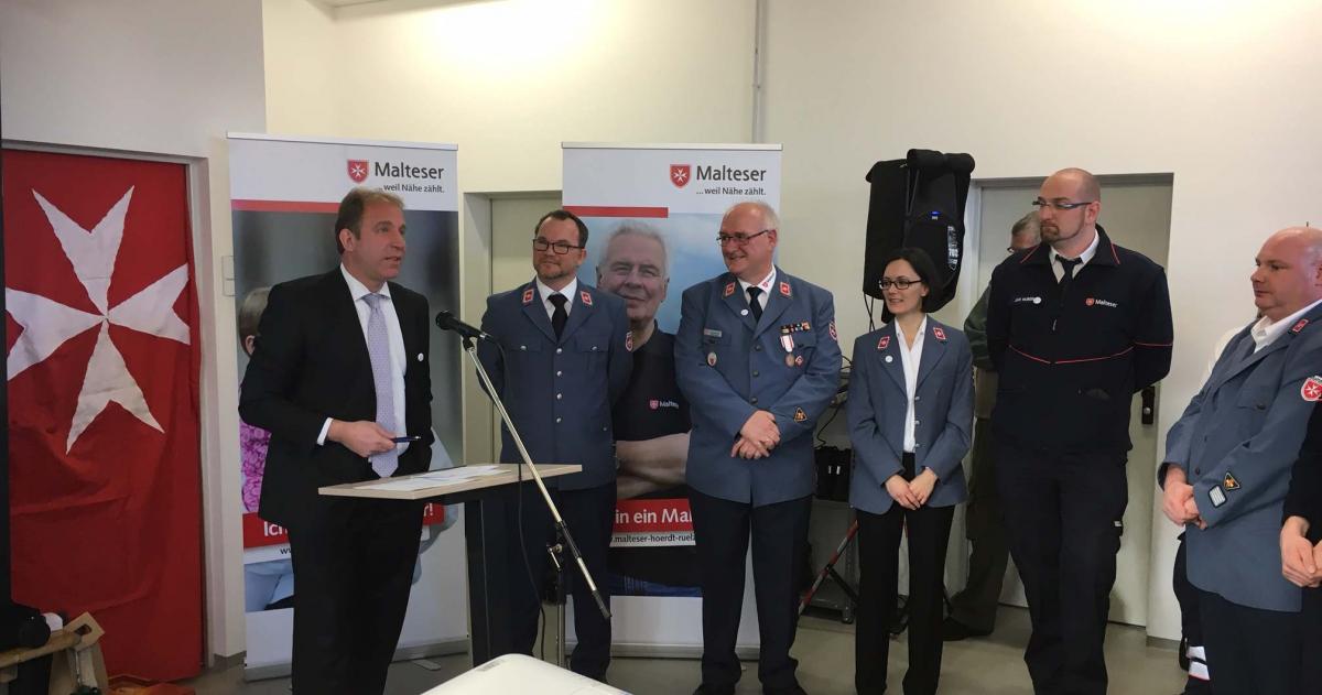 Staatssekretär Randolf Stich hat das vorbildhafte Ineinandergreifen aller Rettungs- und Hilfsorganisationen in Rheinland-Pfalz bei der Flüchtlingshilfe herausgehoben. „In den vergangenen Monaten haben die Malteser gemeinsam mit allen anderen Hilfsorganisationen und vielen ehrenamtlichen Helferinnen und Helfern einen ungeheuren Kraftakt in der Flüchtlingshilfe geleistet. Ihrer Erfahrung, Organisation und Engagement gilt unser Dank“, sagte Stich bei der Einweihung der Rettungswache der Malteser Rülzheim.
