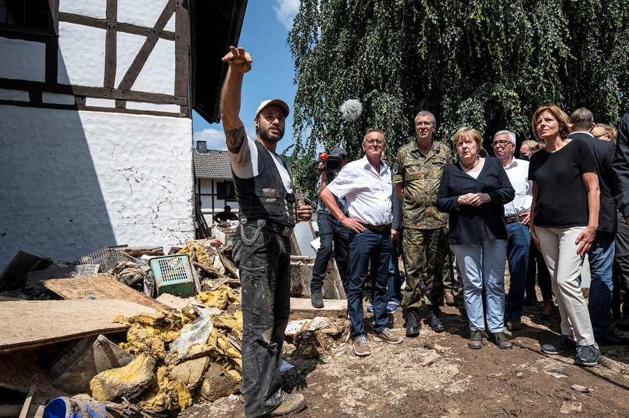 Bundeskanzlerin Angela Merkel zeigte sich ebenfalls tief betroffen von den schockierenden Bildern in Schuld. “Die deutsche Sprache kennt kaum Worte für die Verwüstung, die hier angerichtet ist”, sagte die Bundeskanzlerin an die Opfer des Hochwassers gerichtet, “wir stehen an Ihrer Seite”.
