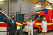 Der Rettungsdienst nimmt während der Corona-Pandemie häufig die zentrale Rolle beim Erstkontakt mit infizierten Patientinnen und Patienten ein und arbeitet an der Schnittstelle zum weiteren Gesundheitswesen. Ministerpräsidentin Malu Dreyer und Innenminister Roger Lewentz haben sich gemeinsam mit Manuel González, Vorstand DRK-Landesverband, über den aktuellen Stand der von der Pandemie geprägten Situation beim DRK-Rettungsdienst Rheinhessen-Nahe informiert.
