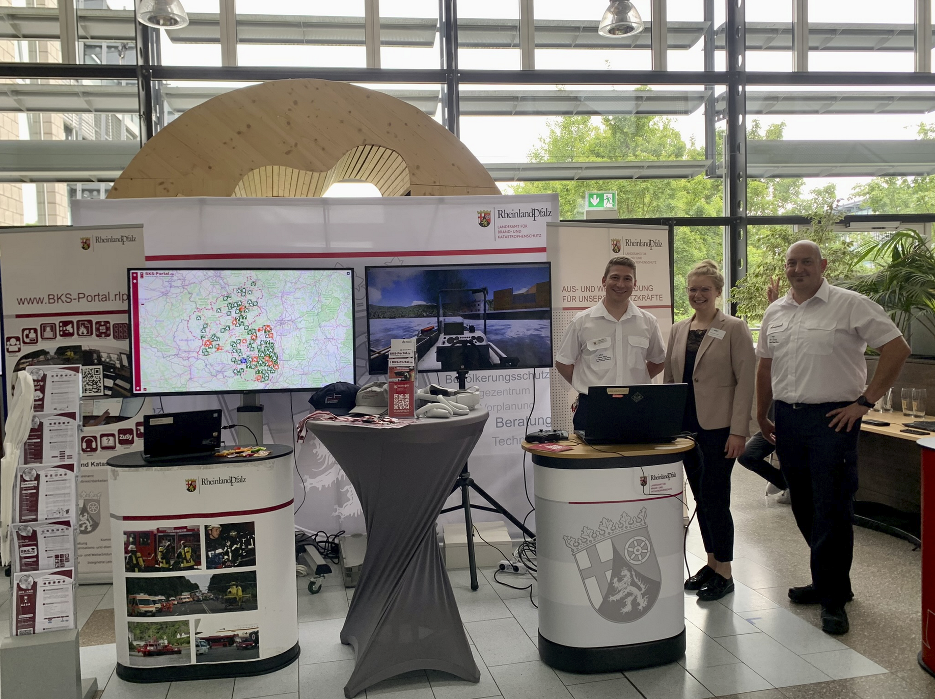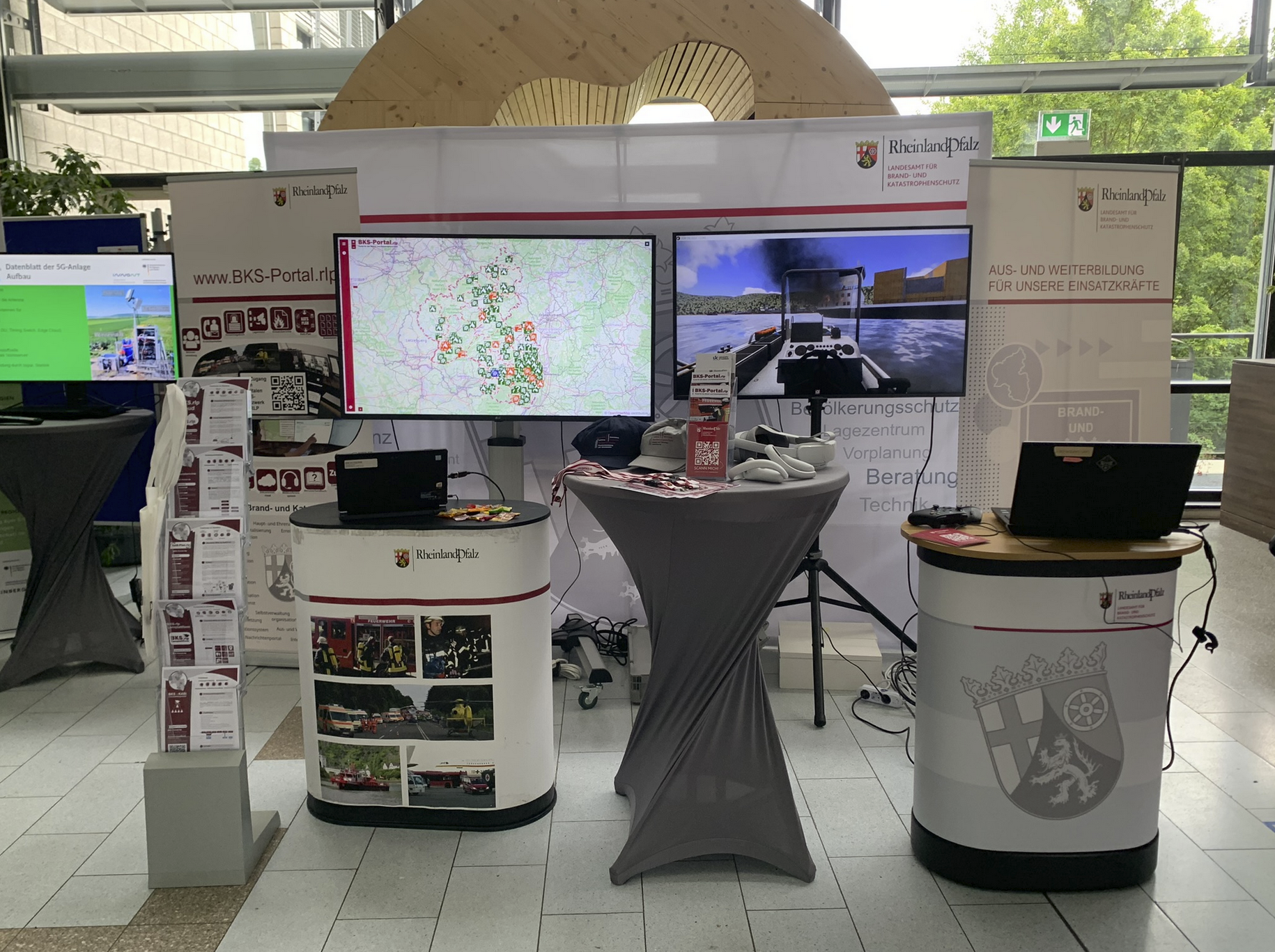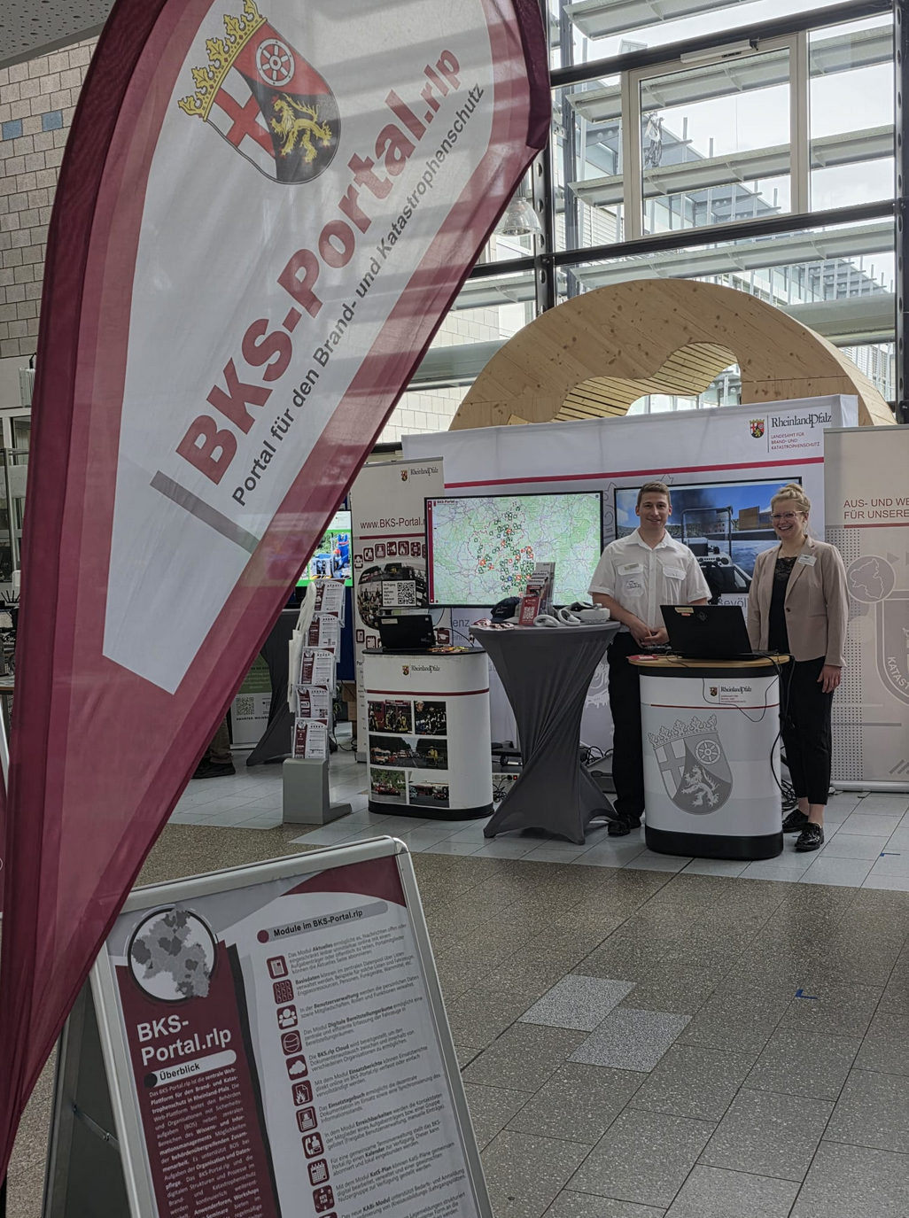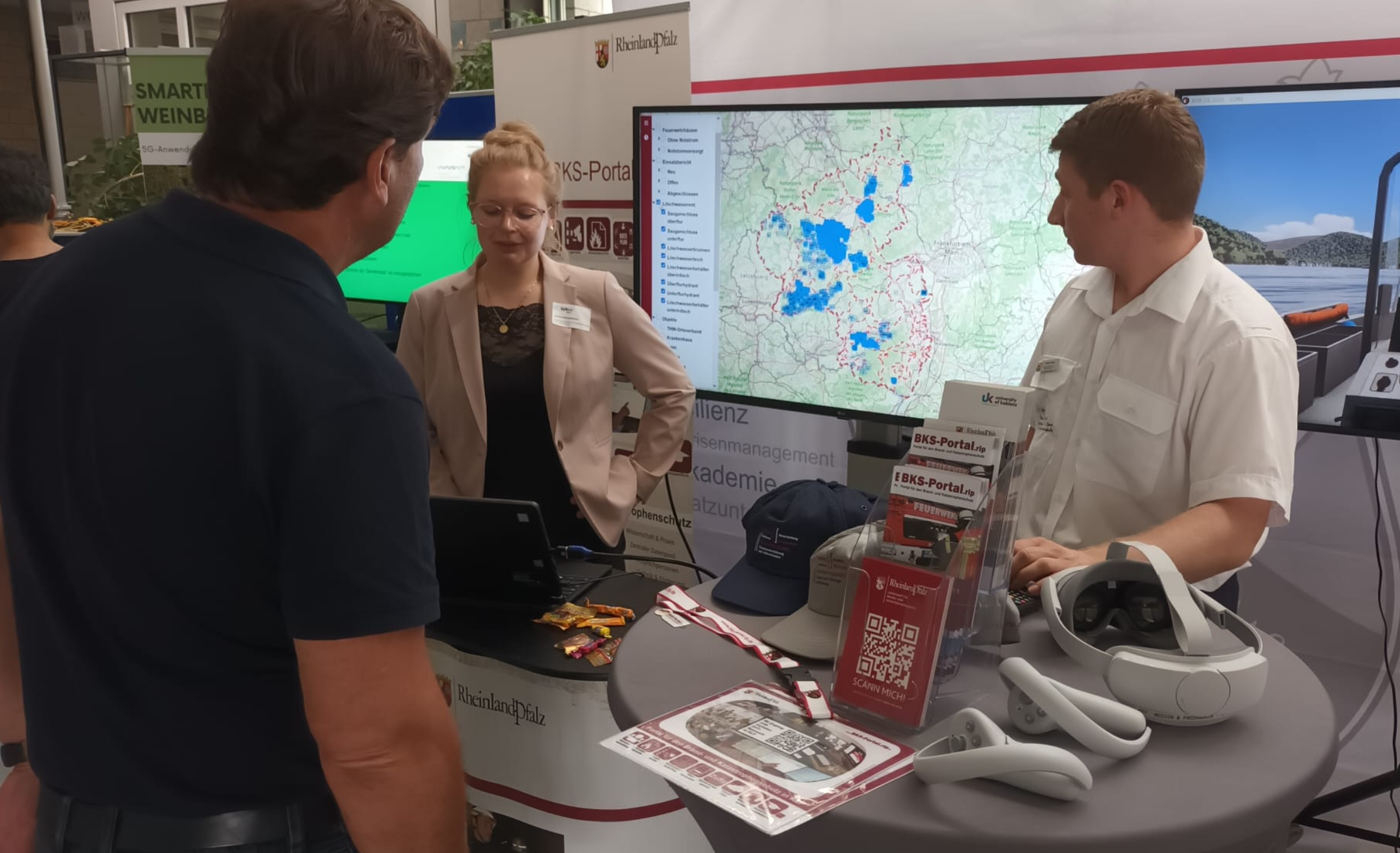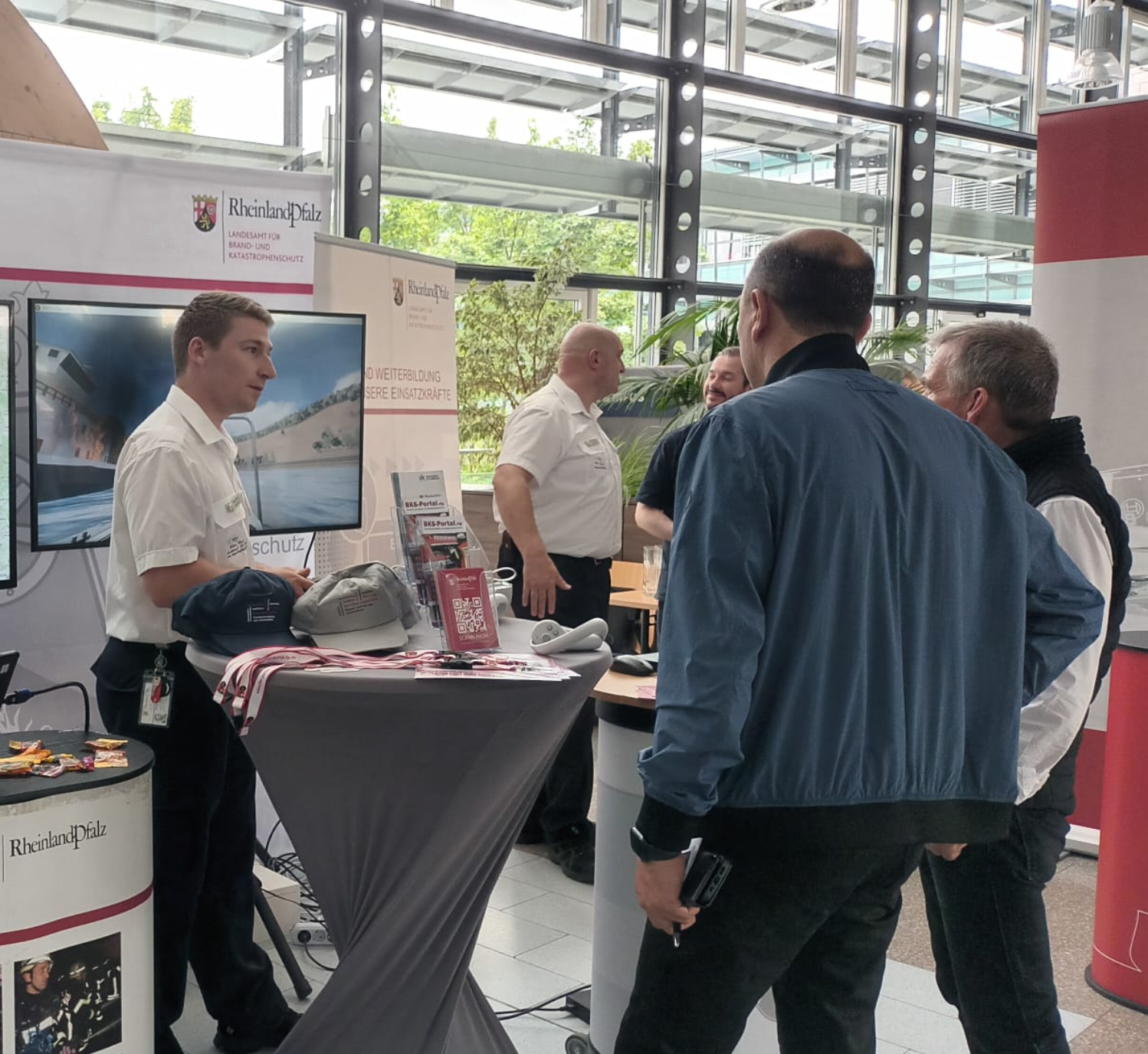"Hier  können Sie  die neuesten IT-Entwicklungen im Bereich Ausbildung und Portalplattform im Bereich des BKS live erleben" erläuterten die  Vertreter des BKS-Portal.rlp Teams sowie der Abteilung Akademie des Landesamtes für Brand- und Katastrophenschutz (LfBK) den interessierten Besuchern an dem gemeinsamen Messestand.