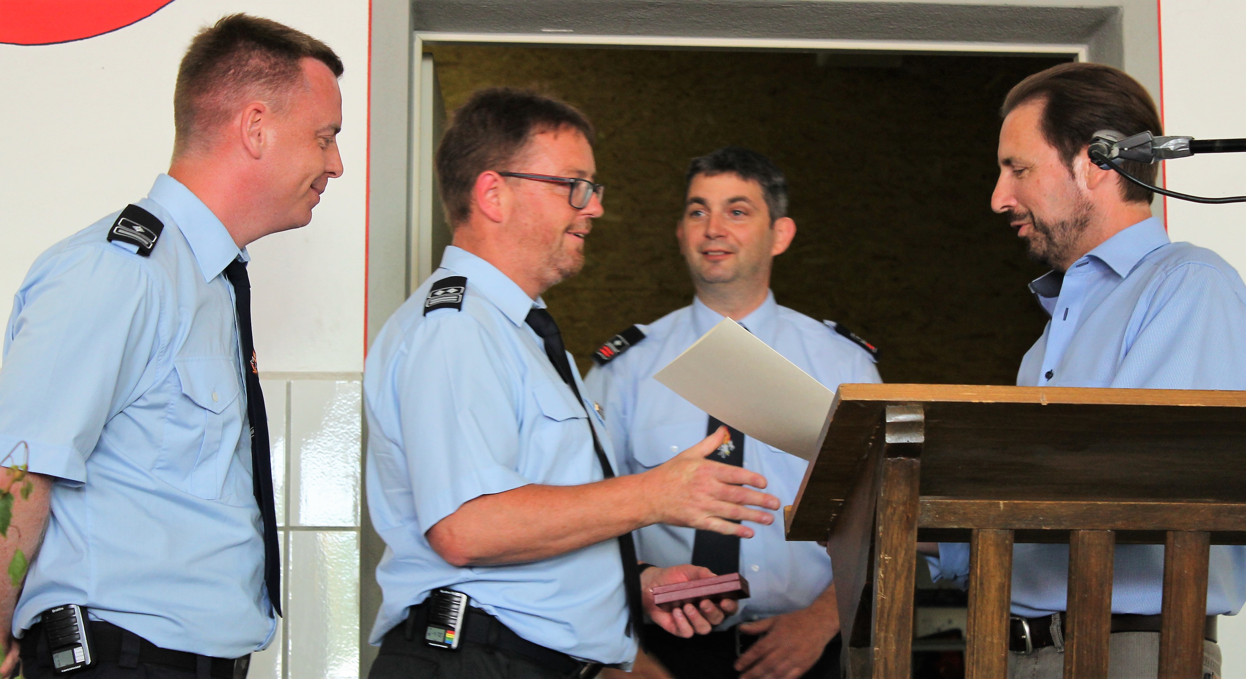 Patrick Busch, Tom Laux, Marcel Grings, Justus Ponath, Jens Schwarz, Nico Leis, Feuerwehr Emmelshausen erhielten durch den Bürgermeister Unkel ihre Dienstgradabzeichen zum Feuerwehrmannanwärter. Sascha Engel, Daniel Korbion, Thorsten Sixel, Feuerwehr Dörth, Christian Heich, Tobias Jakoby, Dominik Kneip, Tobias Krenscher, Sven Rieker, Franco Weijers, Feuerwehr Emmelshausen, Daniel Walter, Feuerwehr Lingerhahn wurden per Handschlag verpflichtet. Thomas Braun und Dominik Kneip, Feuerwehr Emmelshausen wurden zum Oberfeuerwehrmann befördert. Sascha Engel, Feuerwehr Dörth, Timo Vogt der Feuerwehr Emmelshausen, wurden zum Truppführer bestellt und zum Hauptfeuerwehrmann befördert. Benjamin Weber, Feuerwehr Dörth, wurde zum Gerätewart ernannt. Jonas Bleuel, Feuerwehr Dörth, wurde zum Löschmeister befördert. Dieter Eiskirch, Feuerwehr Emmelshausen, wurde zum Hauptbrandmeister befördert. Philipp Monnerjahn, Feuerwehr Emmelshausen, Joachim Elbrecht und Markus Vogt, Feuerwehr Lingerhahn, wurden für 25-Jährige aktive, pflichtreue Tätigkeit das Silberne Feuerwehr-Ehrenzeichen verliehen. Heiko Morschhäuser und Lothar Nick, Feuerwehr Emmelshausen, wurden verabschiedet und erhielten für ihr jahrelanges Engagement durch Bürgermeister Unkel jeweils eine Gratifikation in Höhe von 600,00 Euro. Zusätzlich wurde Lothar Nick durch den Wehrführer Daniel Dötsch zum Ehrenmitglied der Feuerwehr Emmelshausen ernannt. Klaus Eiskirch, Wehrleiter der Verbandsgemeinde Emmelshausen, erhielt für seine besonderen Verdienste um das Feuerwehrwesen das Silberne Ehrenzeichen am Bande.