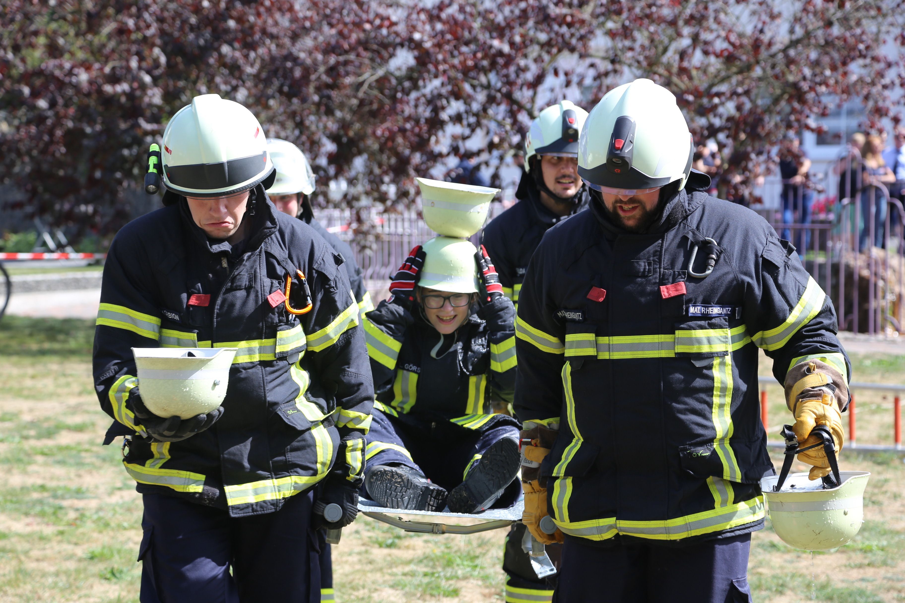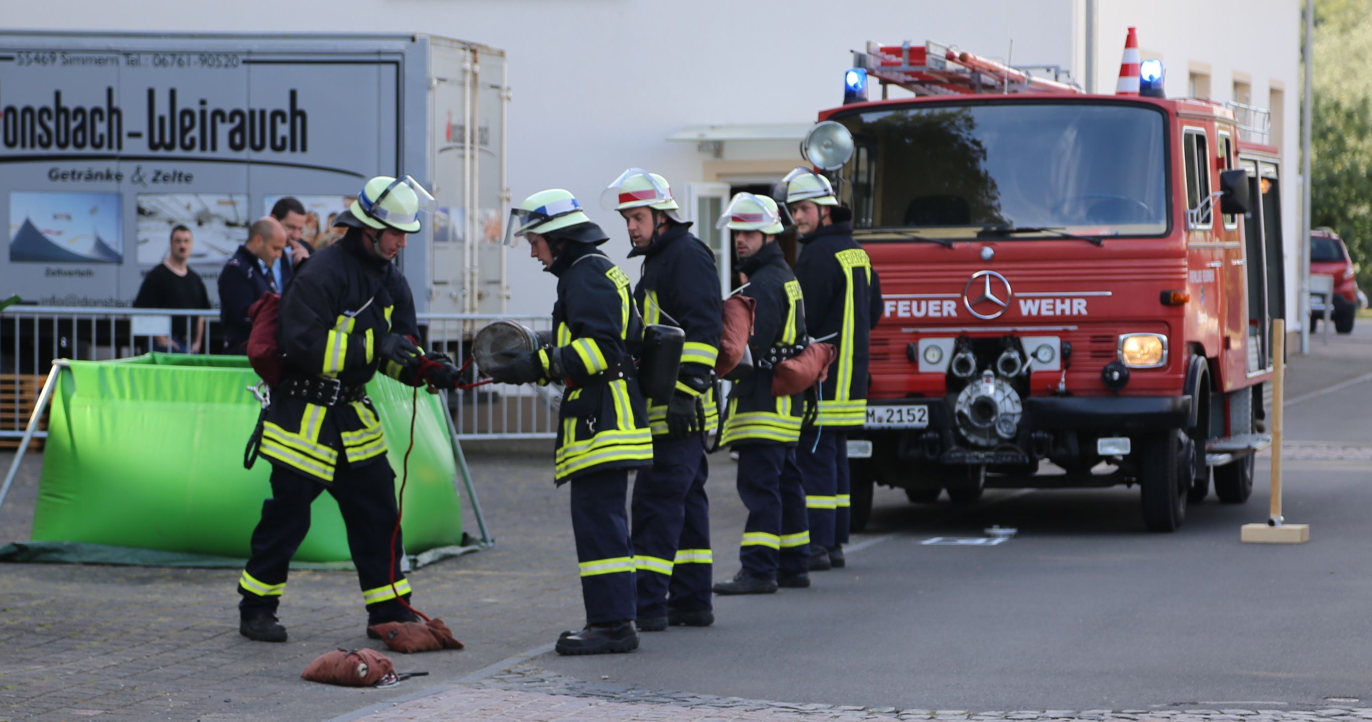Begonnen hat der schöne Tag mit dem traditionellen Staffelwettkampf. Bei dem Staffelwettkampf simuliert die 6-köpfige Staffel einen Löscheinsatz nach der Feuerwehr-Dienstvorschrift 3. Die Feuerwehrstaffeln kuppelten in kompletter Einsatzkleidung die Saugschläuche, schlossen sie an ihrer Feuerwehrpumpe an und verlegten Schläuche. Auch wenn es sich so einfach anhört, die Feuerwehrkameraden müssen sich hier aufeinander verlassen können und miteinander arbeiten und das haben sie super gemacht!