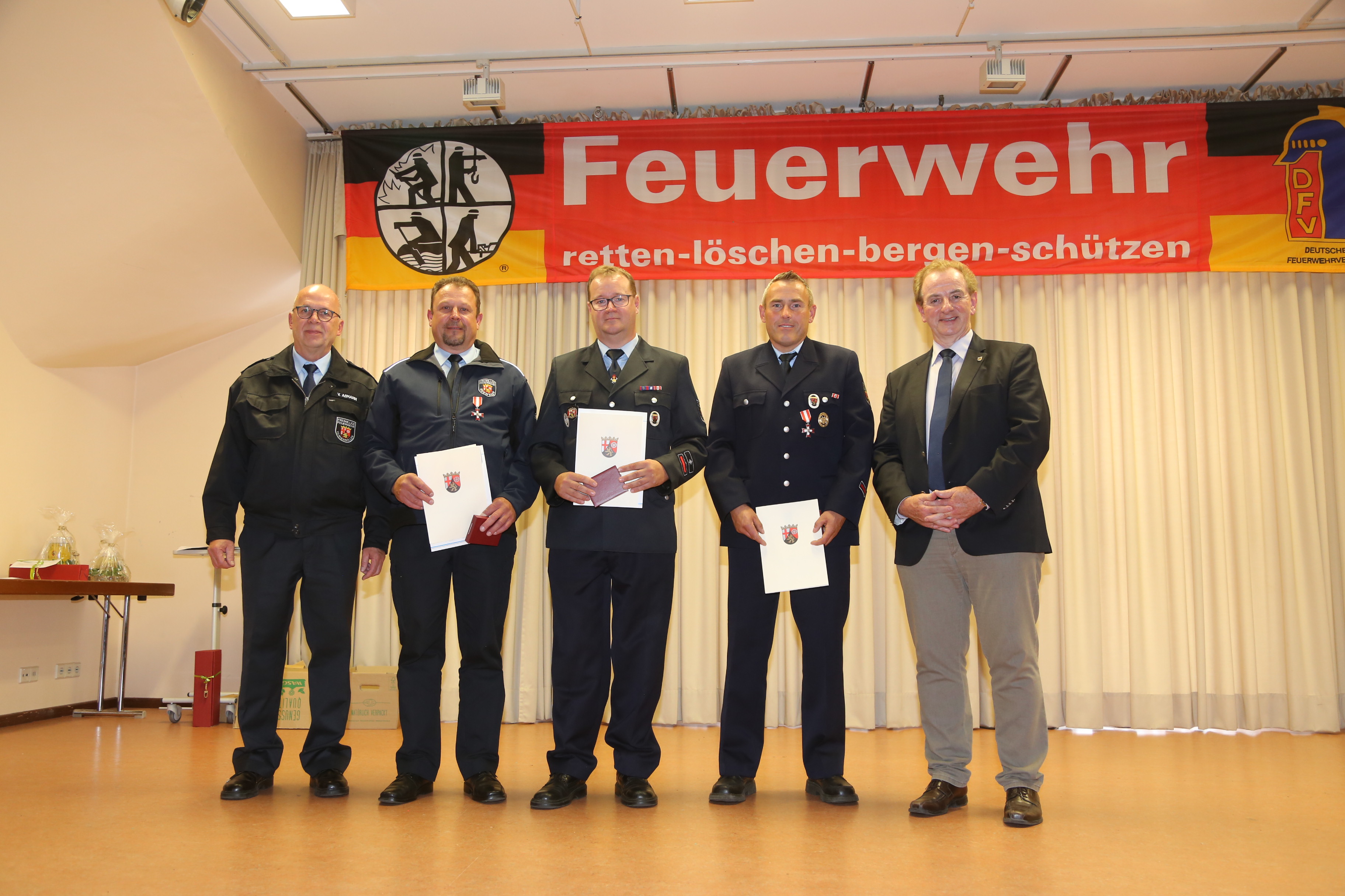Viele Jahre haben sich Stefan Berg und Michael Schubach für die Belange ihrer Feuerwehren eingesetzt und hatten stets ein offenes Ohr für die Belange ihrer Kameraden. Gleiches gilt für Martin Weirich, der bereits im April als stellvertretender Wehrführer der Einheit Eltern verabschiedet wurde. Allen drei Feuerwehrkameraden gebührt eine besondere Anerkennung und Beauftragter Arno Imig und Wehrleiter Volker Aßmann konnten ihnen das Silberne Feuerwehr-Ehrenzeichen am Bande für besondere Verdienste im Feuerwehrwesen verleihen. Dies haben sie wahrlich verdient. Allen drei Geehrten und den frisch Ernannten gratulieren wir ganz herzlich zu ihrer Ehrung und ihren neuen Aufgaben.