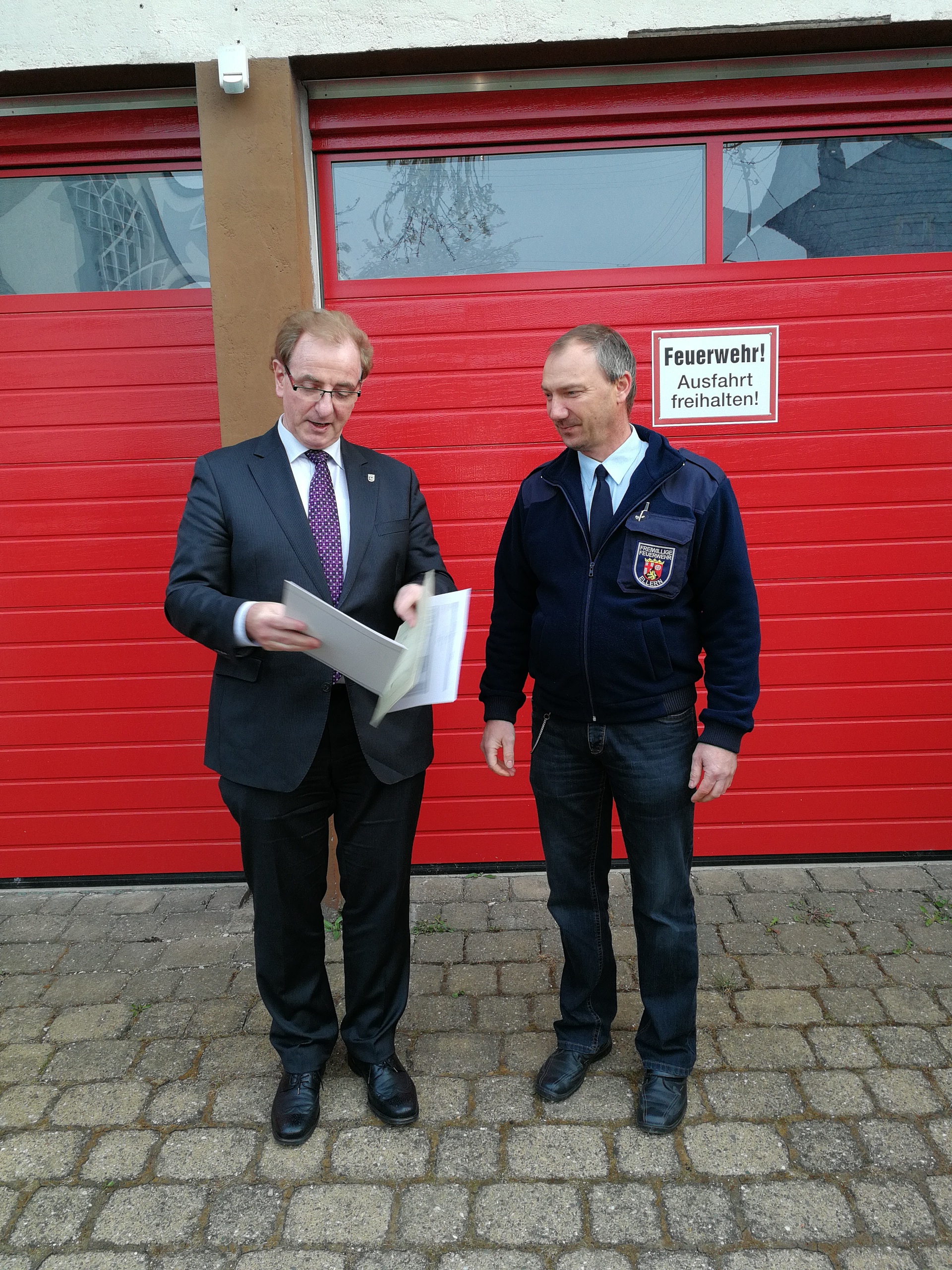 Einstimmig wurde Oberbrandmeister Mario Kretzschmar von den Aktiven der Ellerner Feuerwehr bereits im April diesen Jahres wiederholt zum Wehrführer gewählt. Bürgermeister Arno Imig und Wehrleiter Volker Aßmann durften ihn entsprechend nochmals auf 10 Jahre zum Wehrführer der FFw Ellern ernennen. Im Rahmen einer regulären Feuerwehrübung am Mittwoch, 26. April 2017 überreichten beide die Urkunde und wünschten Mario Kretzschmar weiterhin viel Spaß und eine gute Führungshand.