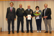 Landrat Dr. Bröhr verleiht das Goldene Feuerwehr-Ehrenzeichen am Bande an Wehrleiter Volker Aßmann