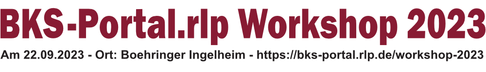 nach dem BKS-Portal.rlp Workshop letztes Jahr in Landau knüpfen wir dieses Jahr im Herbst mit dem ganztägigen BKS-Portal.rlp Workshop im Kongresszentrum der Firma Boehringer Ingelheim in Ingelheim an die bisherigen Seminarveranstaltungen an.